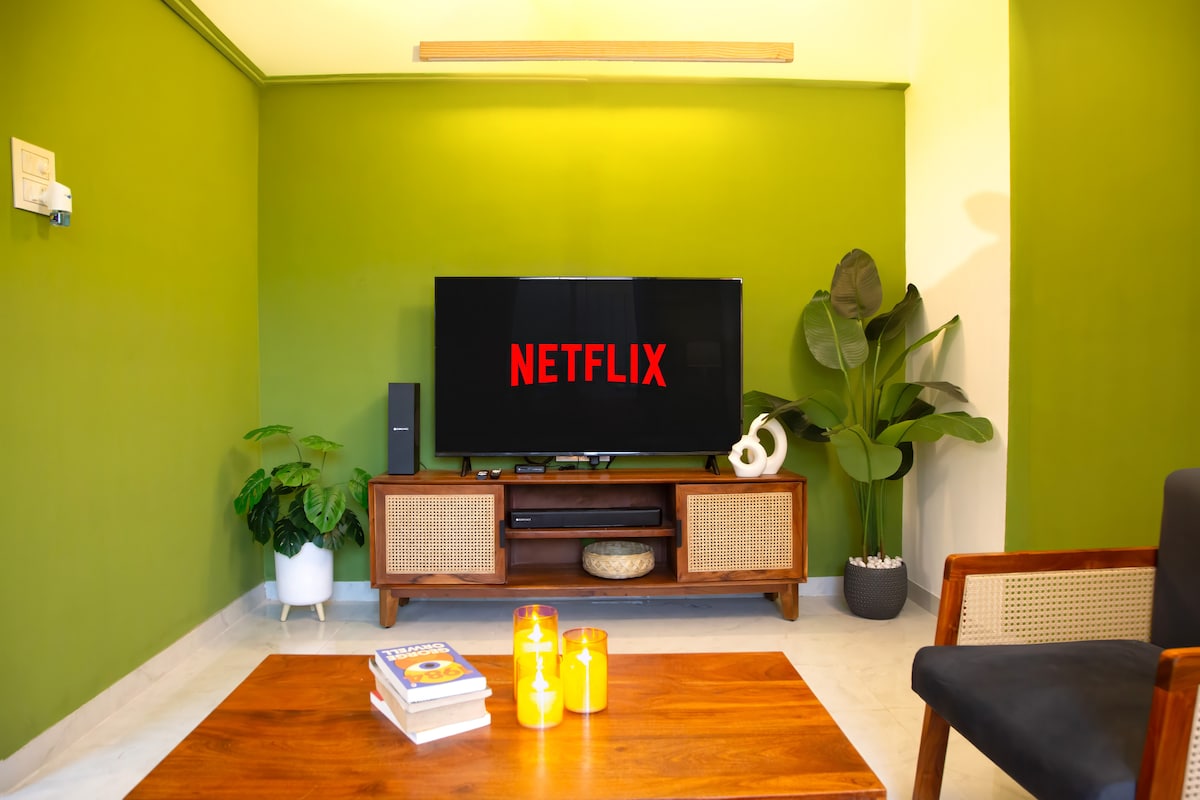 Welcome to Namasté Homes & Stays A cozy designer 1BHK in prime Satara with a peaceful balcony overlooking greenery, trees & a gentle water stream perfect for slow mornings and relaxed evenings. Sleeps 4 with a double bed + sofa-cum-bed. Steps from colleges, hospitals, cafés & essentials. Includes AC, WiFi, 55” Smart TV, kitchen, RO, fridge, parking for 2 cars & lift. A stay designed for comfort, calm, and coming back.