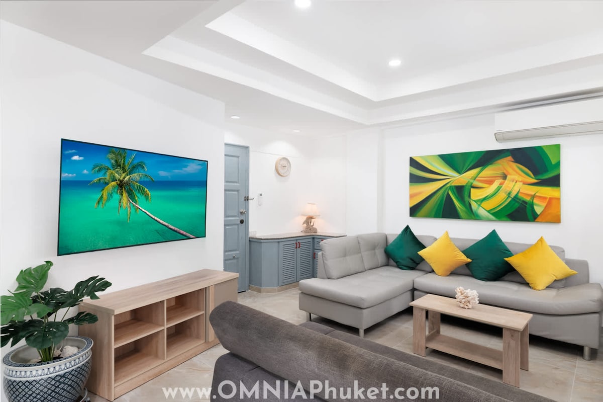 Enjoy stunning ocean views from every corner of the home – whether you’re relaxing on the sofa, cooking in the kitchen, or waking up in bed. This modern hillside condo offers an immersive sea-view experience overlooking beautiful Patong Bay, making every moment of your stay unforgettable. Located in a peaceful area just 3–5 minutes from Tri Trang Beach, Patong Beach, freedom beach and the famous Bangla Road nightlife, this property offers the perfect balance of serenity and convenience
