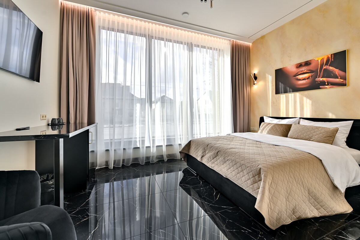 這間迷你雙人房將增強距離和所有最小需求。 在房間內,您將享受精緻和現代奢華,露臺可欣賞內院景觀。 考納斯的鑽石賓館是休閒和私人度假屋,奢華和現代優雅。 我們承諾有一個平靜舒適的環境。 我們誠摯邀請您在城市周圍環境中享受優質休息。