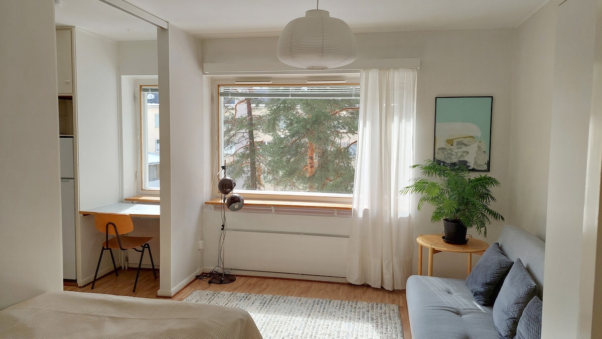 享受赫爾辛基最精彩的一面!全新翻修的單間公寓,配有空調,位置極佳,靠近一切。 從五樓(有電梯)可欣賞屋頂的美景,但非常安靜。 公寓旁邊有城市自行車站、電車和巴士站,以及雜貨店、咖啡廳和餐廳。您可以步行前往海邊,以及奧林匹克體育場、西貝柳斯公園、Töölön-lahti灣區等景點。距離主要火車站2公里,乘坐電車10分鐘。也適用於長期住宿!