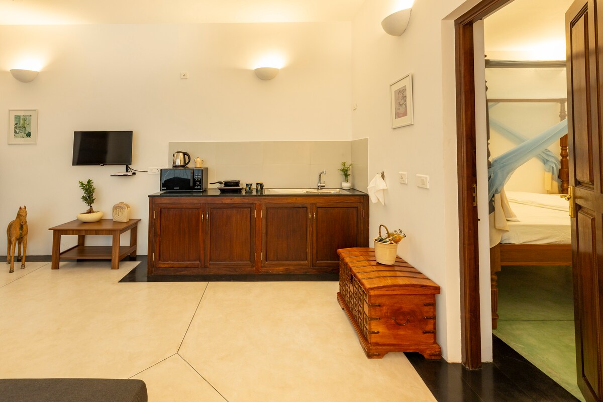 Spacious studio in an apart-hotel, right at the heart of ECR, Auroville. Perfect for couples, backpackers, digital nomads, long stays or who would like to experience the rich heritage of Indo-French and the serene beaches of the east coast.