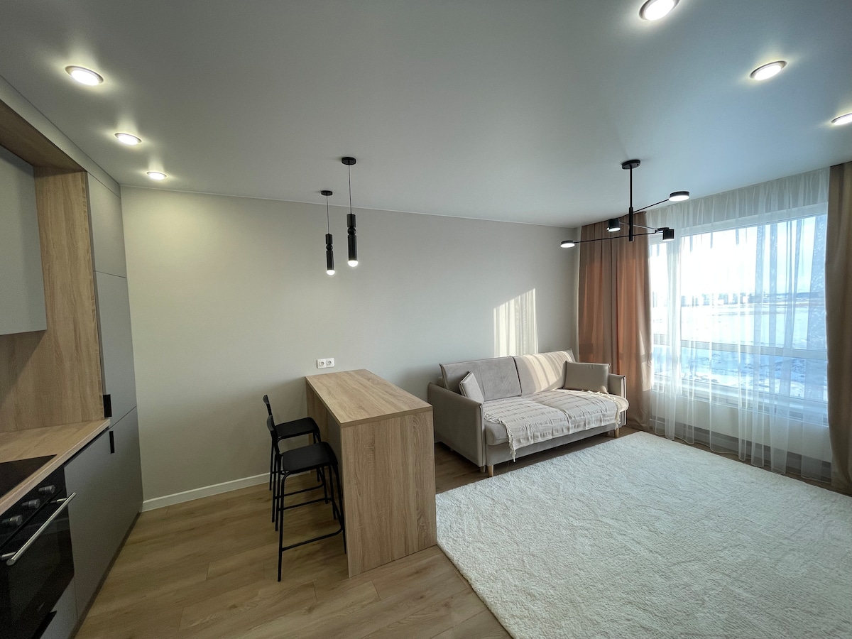 阿斯塔納市中心的舒適公寓,距離堤岸僅一步之遙!