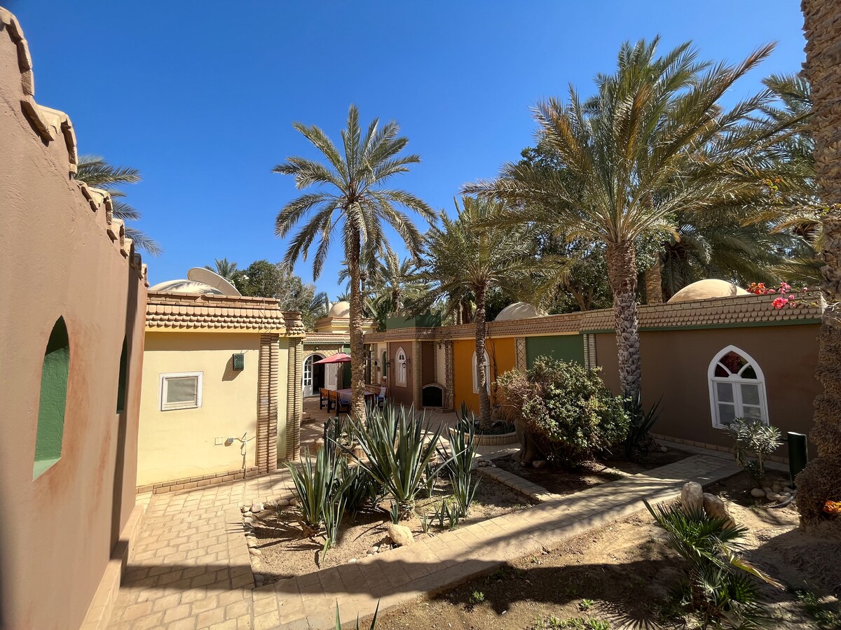 It is a calm and private property recently renovated situated in the midst of a palm tree field, slightly away from town. Adjacent to it is a date factory. The house is equipped with necessary amenities such as a swimming pool, kitchen, and wifi to ensure your holiday is comfortable. Meilleure qualité prix voir les commentaires.