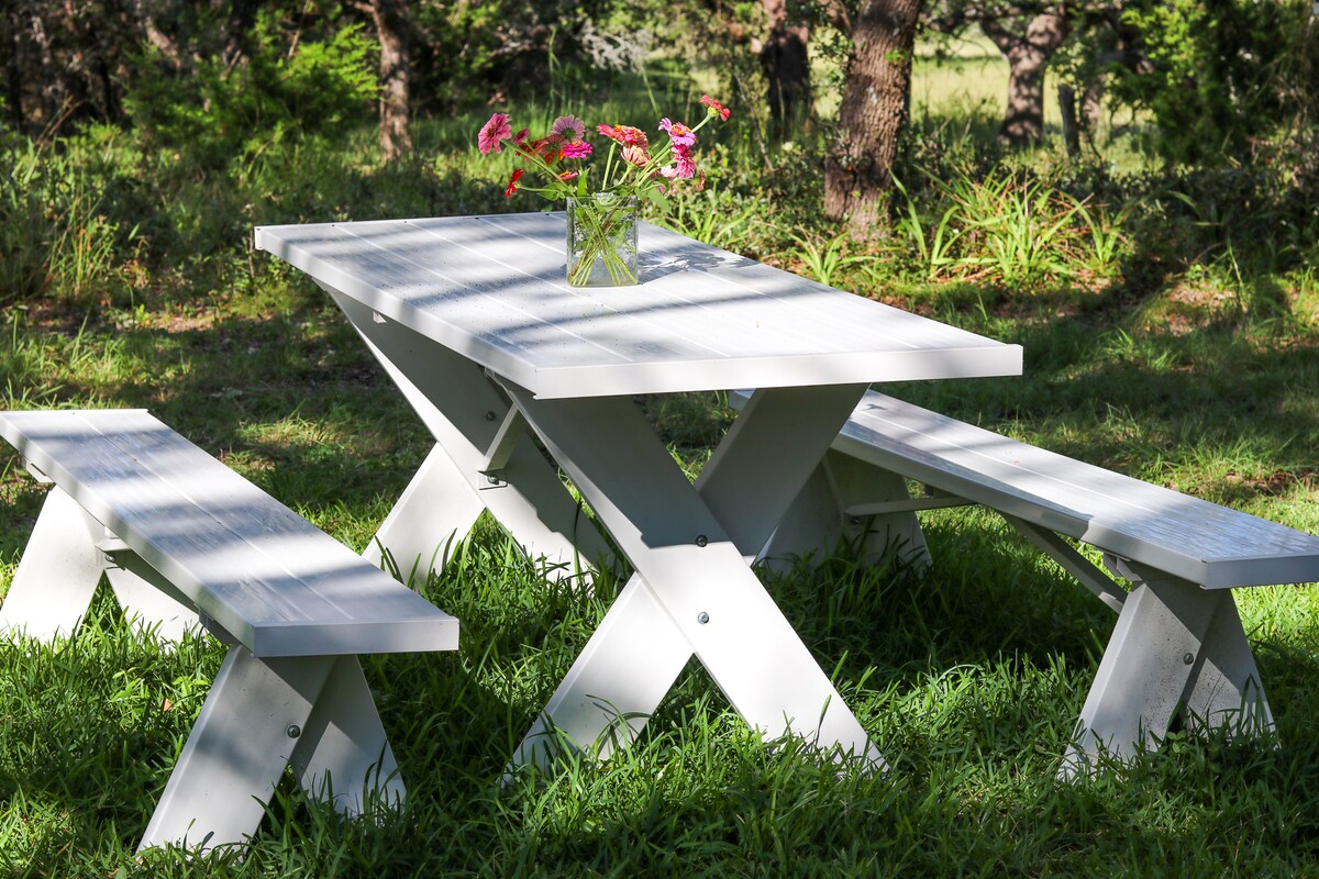 在德州山地中心的迷人單間小屋享受浪漫假期。 這間度假屋曾經是歷史悠久的黑斯廷斯學校,經過精心修復,將永恆的魅力與現代的舒適融為一體。 旅居內部擁有優雅的農舍裝飾、精心挑選的古董,以及舒適奢華的細節。 走出戶外,探索六英畝的寧靜空間,與自由漫步的綿羊、雞和我們俏皮的尼日利亞矮山羊共享,並確保與我們上鏡的公雞Peewee打招呼!