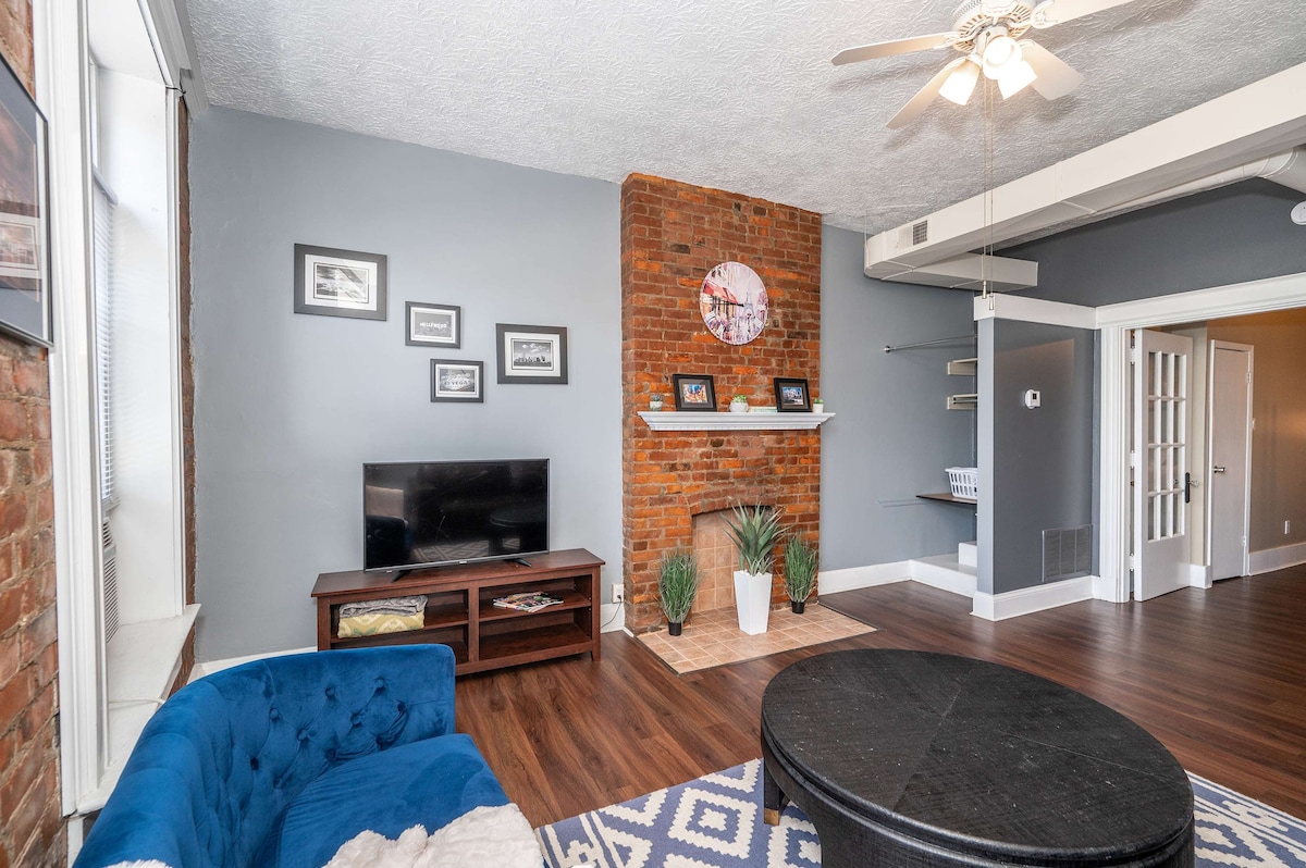 歡迎來到Stave A While ,這是位於肯塔基州科文頓市中心的時尚舒適的家。 這間2房2浴室的公寓融合了工業風格,採用外露的磚石檯面,並具有舒適的藍草魅力。 只需幾步即可享用當地美食、夜生活,並可快速前往辛辛那提市中心的體育和娛樂場所。 此外,旅人可在大廈後方的私人停車場免費停車,十分方便。