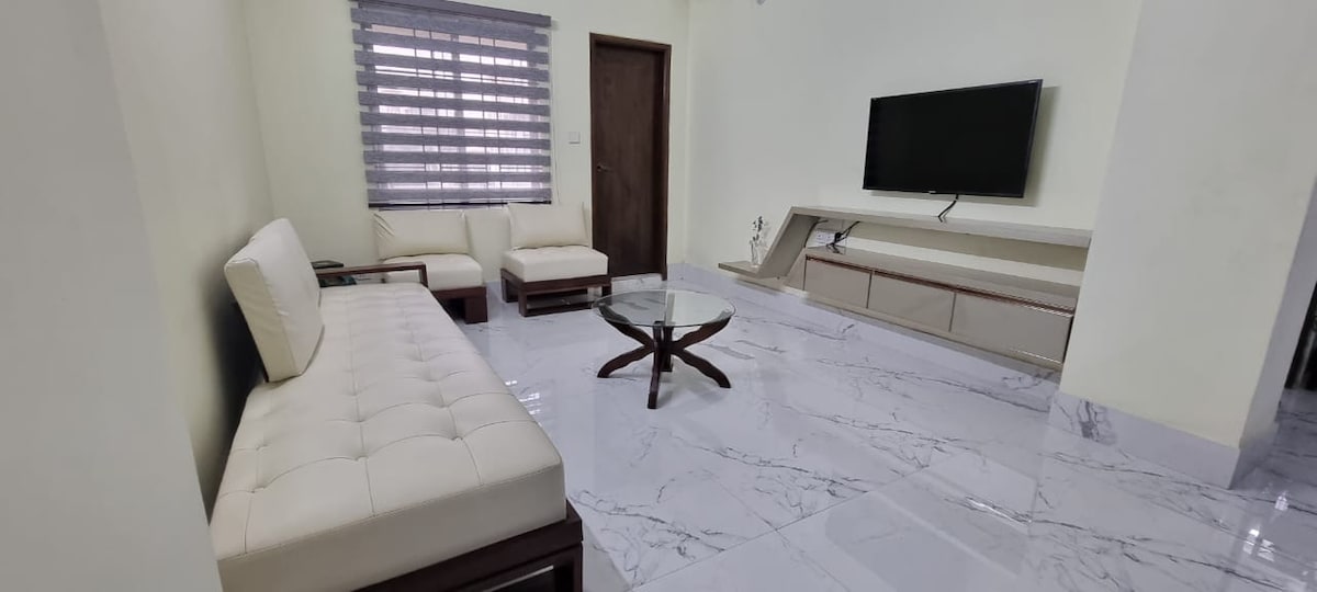 Welcome to our charming and cozy apartment! Our air-conditioned three -bedroom unit is family-friendly and spacious. It features a large living-dining area, perfect for relaxation and enjoyment, equipped with a 4K UHD TV and Wi-Fi. An IPS power backup system is in place for any electricity failures. The well-equipped kitchen includes a water filter and all necessary utensils. Please note that the building does not have an elevator.