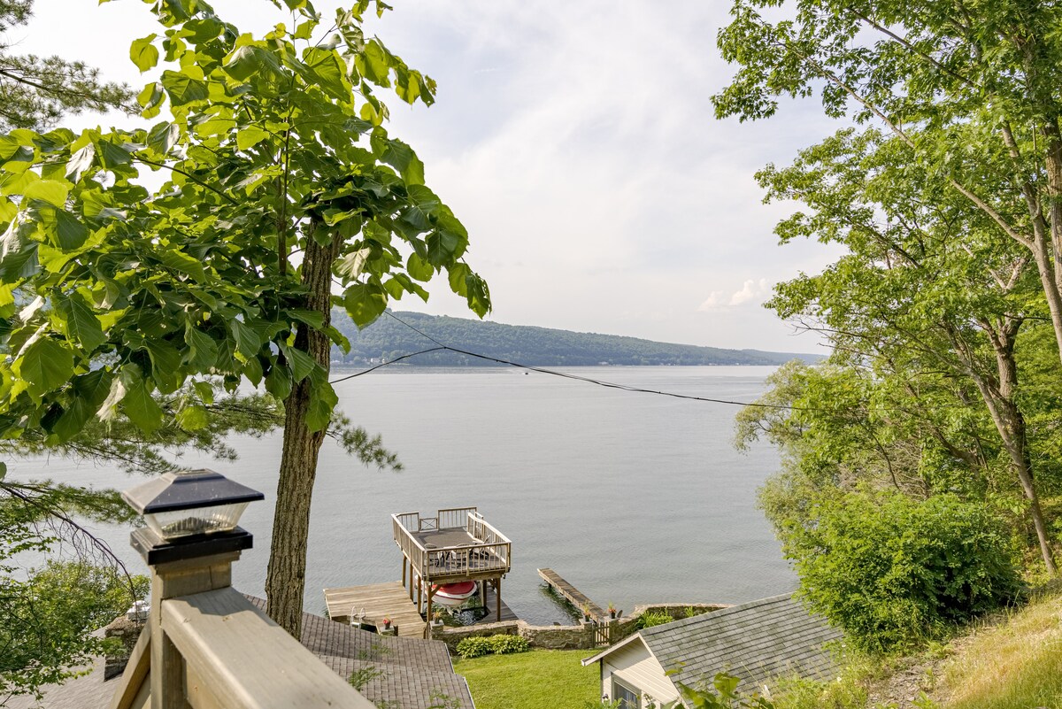 Welcome to Keuka lake in this beautiful home that boasts 3 master suites. The living room has a panoramic view of Keuka Lake. There is a deck off the top floor and a patio off the first floor to sit and enjoy the lake view as well. From the downstairs patio you are only a few steps to the beach. At the end of the dock the lake is only 3 feet deep so it’s excellent for swimming. Everything in this house is new and very clean. We are a mile from downtown Penn Yan.