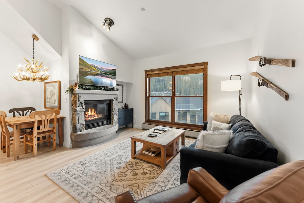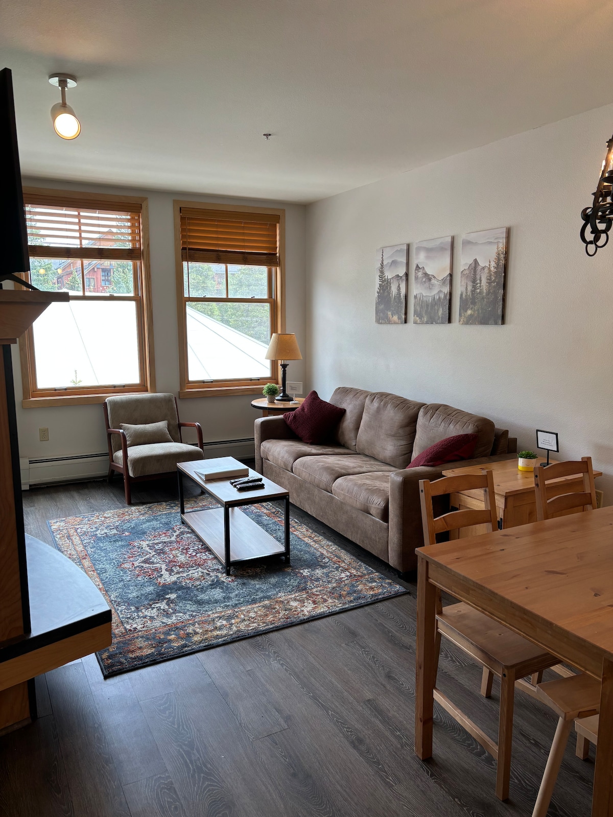 歡迎來到我們位於River Run Village ( Keystone Mountain )中心的明亮1間臥室公寓! 無需搭乘接駁車前往電梯,因為這間公寓步行3分鐘即可抵達纜車! 這間公寓可容納四人,設有一間配有加大雙人床的獨立臥室,以及一個配有花崗岩檯面的最新單位。 在室內享受火爐的溫暖或在室外的私人陽臺上享受您最喜愛的飲料,同時享受陽光和山坡的壯麗景色。