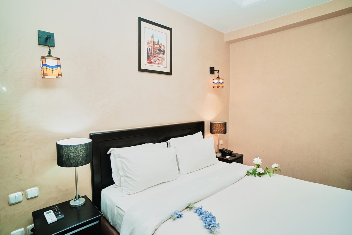 歡迎來到我們迷人的獨立房間,位於薩萊正宗裏亞德中心地帶。 享受自己的套房浴室,享受隱私。 包含早餐,提供美味的當地菜餚,讓您開始新的一天。 此外,為了極致放鬆,我們的裏亞德提供水療中心和澡堂區域,可以非常合理的價格訂購。 您還可以使用所有裏亞德休息室,讓您放鬆身心。