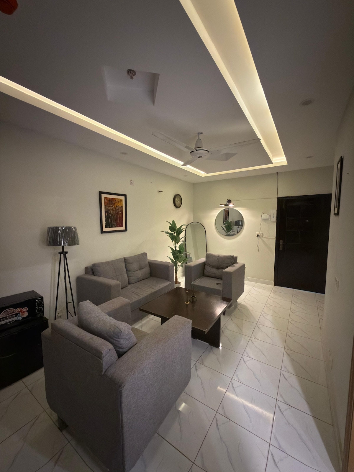 This Fully Furnished Apartment Includes: 4 Air Conditioners. Iron & Ironing Board Microwave Oven Refrigerator and Freezer Cutlery Set Soft Drinking Water Electric Kettle High-Speed Wi-Fi. Flat-Screen TV. Cold Water kitchen and bathrooms. Regular Cleaning Service. Indoor Games. Air Fresheners. Tea essentials. Comfortable bedding and linens Towels and basic toiletries Cookware (pots, pans, utensils) Dining table and chairs Wardrobe and storage space & more…