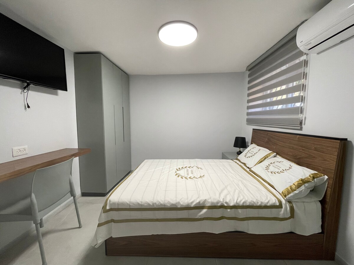 歡迎來到你完美的耶路撒冷單間公寓! 距離Machane Yehuda市場、舊城區、餐廳和交通工具只有幾步之遙。 舒適的空間,配有雙人床、座位區、小廚房(冰箱、微波爐、水壺、爐頭、炊具)和配有淋浴間、毛巾、洗漱用品的私人浴室。 快速Wi-Fi、智能電視、冷氣和簡單的自助入住密碼。 附近有公共停車位。請注意:通往公寓的樓梯不適合行動不便的人士。