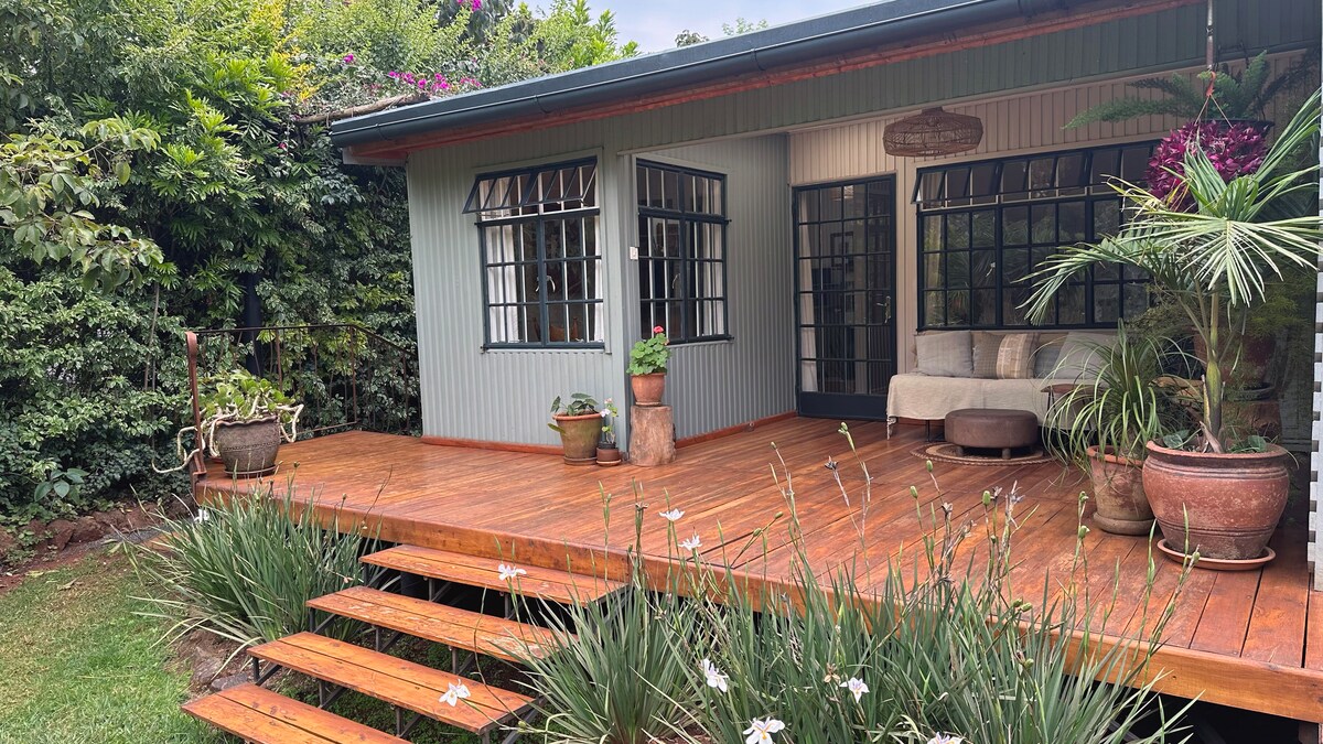 迷人的小屋坐落在4英畝的成熟花園內,與主屋隔開,周圍有灌木和樹木,鳥類豐富。 距離Karen中心5分鐘路程,有購物中心和餐廳,許多餐廳提供外賣服務。 設有設備齊全的小廚房,可自行準備食物。 WiFi覆蓋範圍。電視有本地、Netflix、You Tube和連接到DSTV(如有需要)。 DVD 播放機,備有各種光碟。