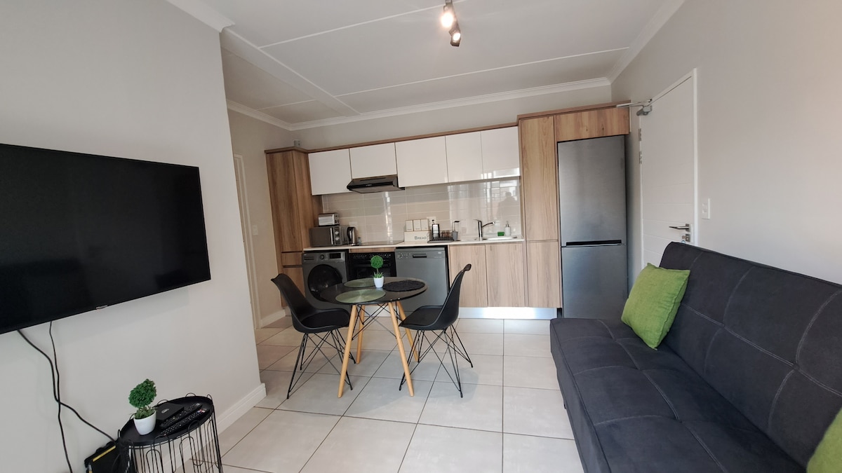 Sleeps 2 - Modern 1 bedroom apartment with double balcony that is beautifully furnished with all essentials provided to make your stay comfortable. At South Africa's first beach like crystal clear lagoon to be used for an array of water sports. The lagoon offers integrated swimming pools with two large beach area surrounded with board walks and resting areas. Disclaimer: Uber and Bolt currently not allowed inside the estate, but deliveries are allowed inside.