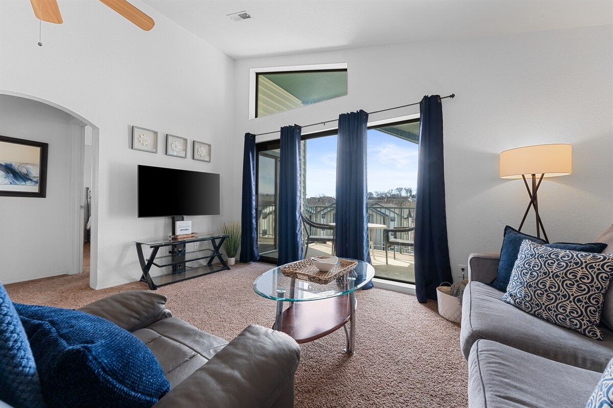 前往Table Rock Lake的湖濱頂層公寓度假屋,享受頂樓無阻礙的景觀,是浪漫度假、家庭度假或女孩旅行(或男士旅行)的完美場所!距離銀元城、山茱萸峽谷(Dogwood Canyon)僅幾分鐘路程,距離布蘭森大道(Branson Strip)僅30分鐘路程。享受拱頂天花板、全功能廚房、沙發床、洗衣機/烘乾機和私人露臺,可欣賞壯麗的湖景。預訂此公寓可享門票九折優惠。放鬆身心,探索,留下永恆的回憶!