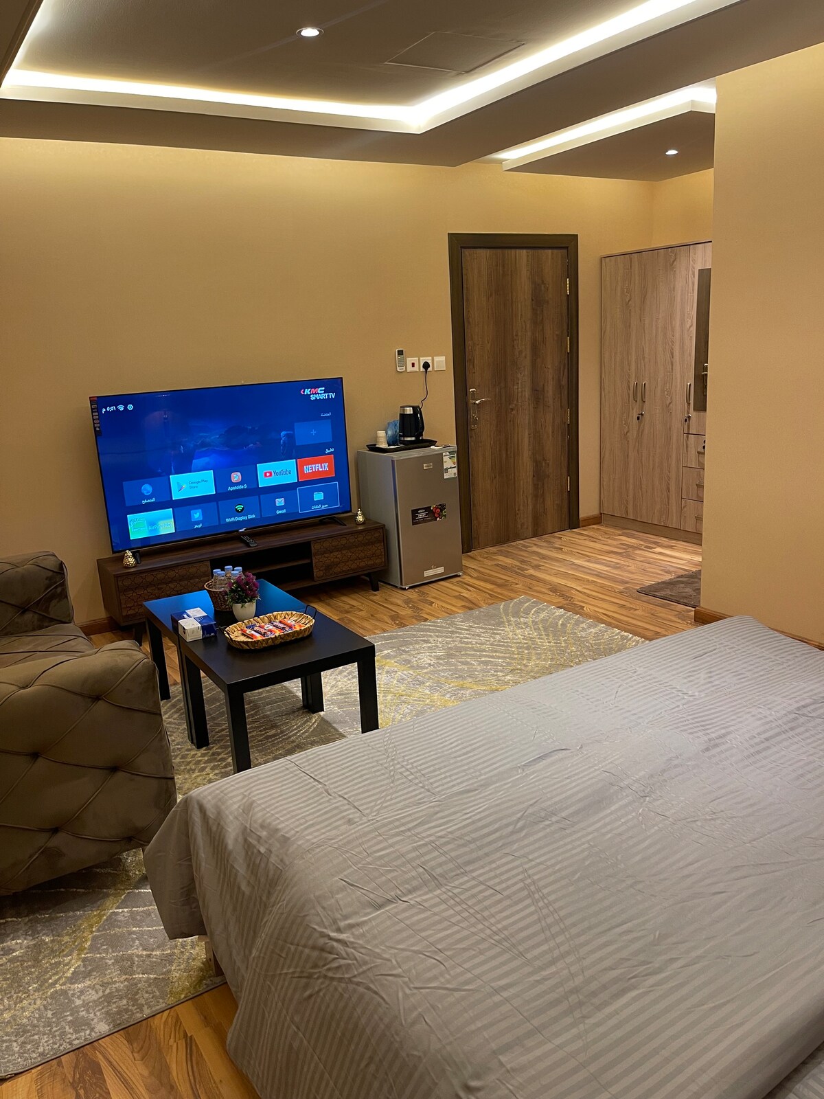 這間精美的1房公寓位於利雅德充滿活力的街區之一,讓你體驗現代舒適。 這個空間的裝飾精緻,氛圍舒適,將優雅與日常功能融為一體。 無論你是放鬆身心、在家工作,還是與旅人共度時光,這間精心佈置的公寓都能為你提供一個迎合你生活方式的溫馨環境。