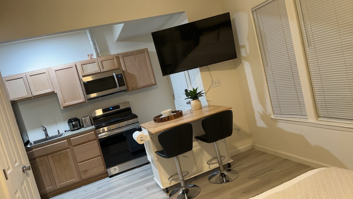 位於漢福德最新街區之一的1間臥室客用套房,有自己的專用私人入口,門外有路邊停車位。距離購物和用餐地點僅幾分鐘路程,距離基督復臨安息日會醫療中心(Adventist Medical Center)2英里,距離凱莉·斯萊特衝浪牧場(Kelly Slater's Surf Ranch)和利摩爾海軍航空基地(NAS Lemoore)15分鐘路程,距離紅杉國家公園(Sequoia NP)1小時路程,距離優勝美地國家公園(Yosemite NP)2小時路程。 享用全尺寸冰箱,並在設備齊全的小廚房烹飪。獨立戶外空間和泳池。