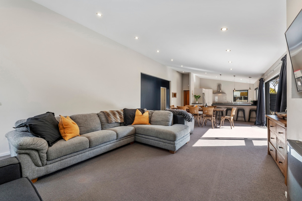 這個由屢獲殊榮的建築師設計團隊Stapleton Elliott設計的新度假屋是一個設備精良的度假屋,是放鬆度假的完美基地。 步行3分鐘即可抵達湖畔,非常適合探險或放鬆身心。 為家庭和團體設定; 2張特大床、1張大床、4張特大單人床、2張抽屜床和3間浴室 Rocket Espresso、蹦牀、特斯拉電動車充電器 步行15分鐘即可抵達湖畔商店 開車15分鐘即可抵達陶波