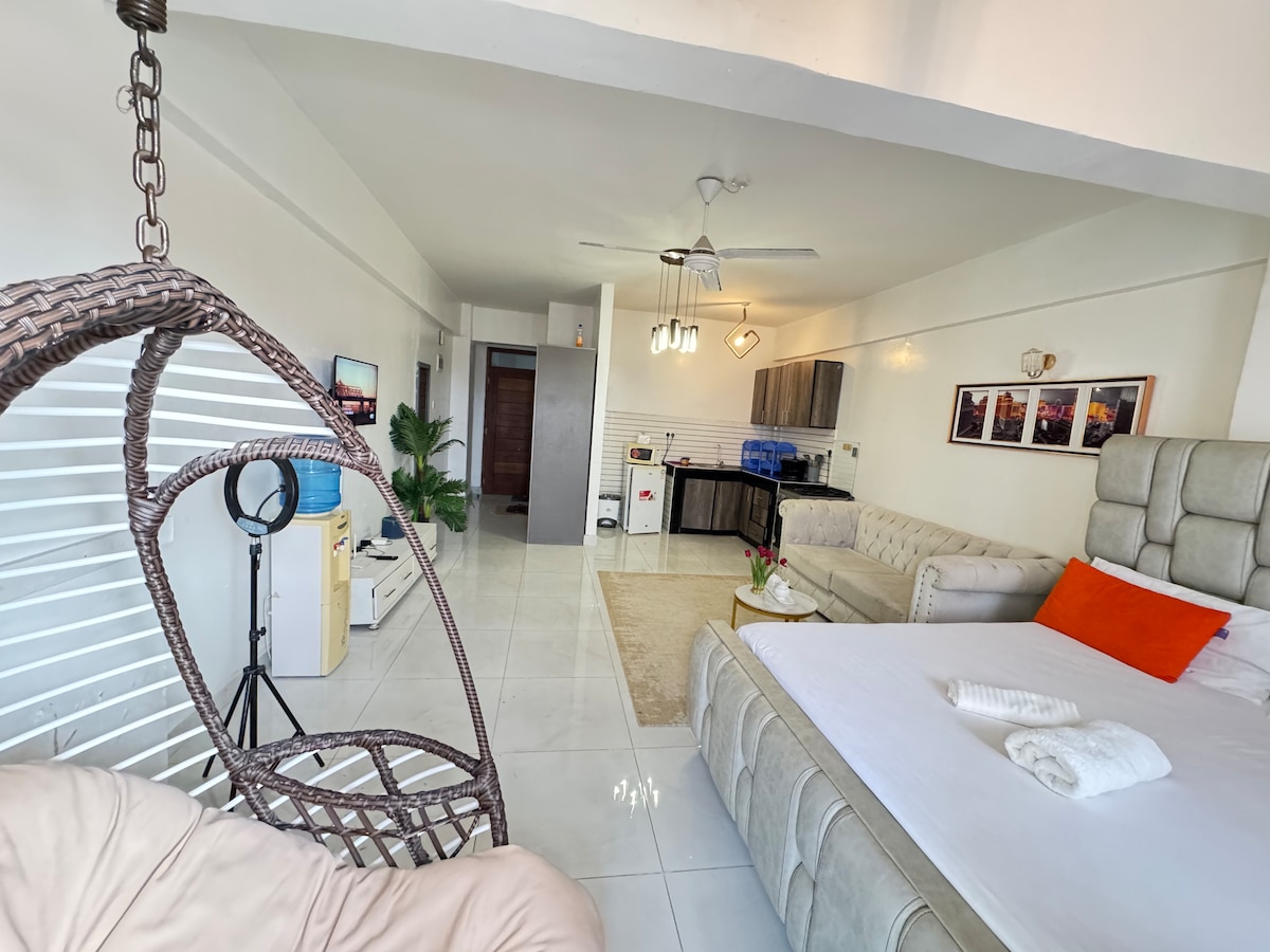 在二樓的這間現代化1BR公寓享受舒適的住宿。 它位於幾乎所有地方 開車5分鐘即可抵達Nyali +開車7分鐘即可抵達哈勒公園 +20分鐘車程前往機場 +免費不限流量的高速WIFI +免費用電 +咖啡機 + 55 吋智能高清電視 +花園景觀 +泳池 + 24小時保全 俯瞰花園,在安靜和適合家庭入住的社區,您將在晚上體驗涼爽的微風,或在我們的花園欣賞日出。 我們期待接待你,立即預訂!