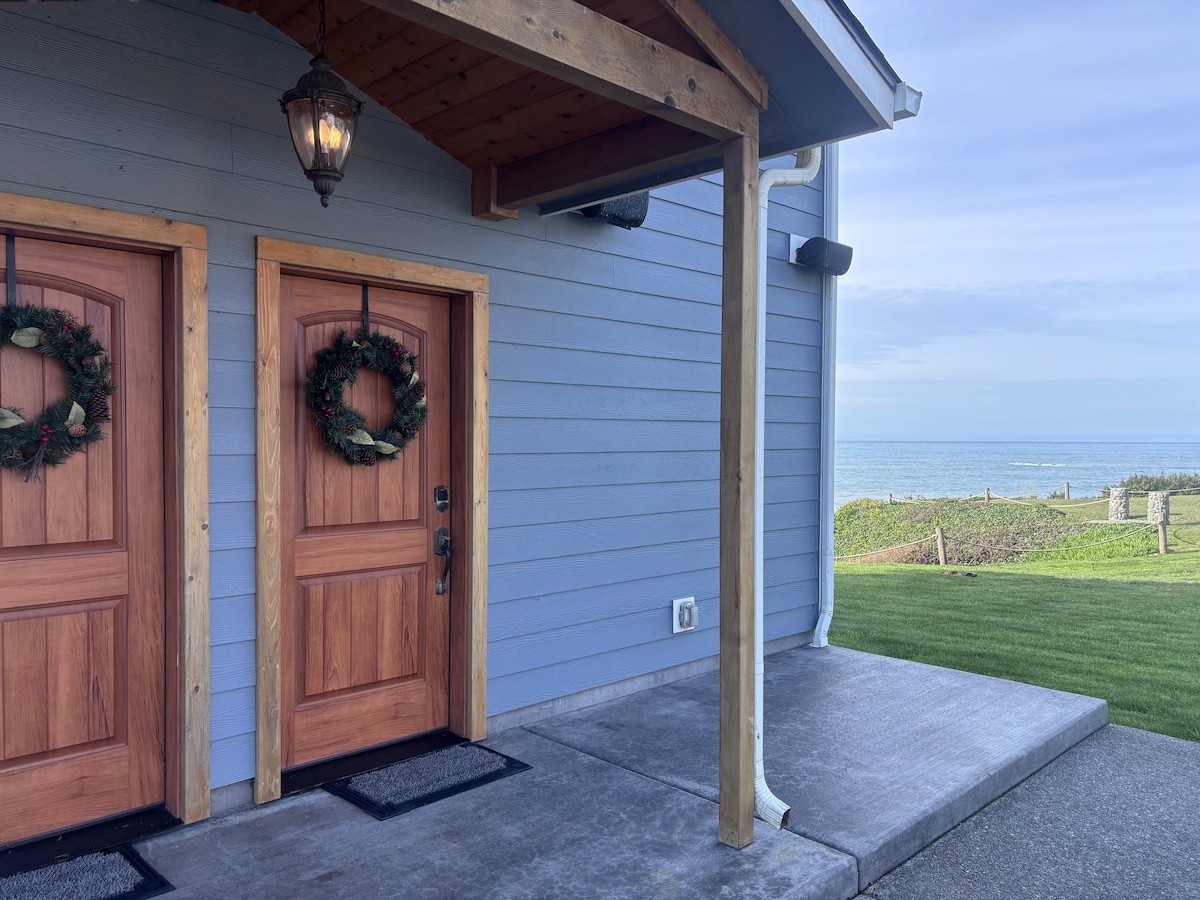 The Point provides the most amazing OMG view of the ocean and beach of the Oregon South Coast and possibly the world. You sit 100 feet above the water on our beach front property looking at the dolly dock pier and harbor to the east and Battle Rock and and a long stretch of beach to west. You can walk to the end of the property and enjoy your favorite beverage on the deck on the cliff above the water. You have truly magnificent views from our top-of-the-line studios.