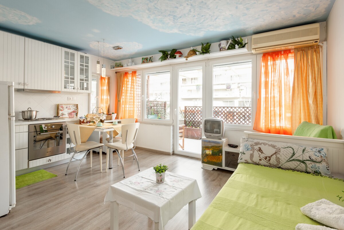 時尚、剛剛翻修過的單間公寓,距離塞薩洛尼基市中心僅10分鐘路程 智慧、專業的設計,擁有島嶼氛圍,位於市中心真正的綠洲。 設備齊全的廚房、Nespresso咖啡機、燃氣供暖、高達300MBps的高速光纖網路、Netflix帳號。 非常適合商務旅客和觀光客。 歡迎入住,祝您住宿愉快!