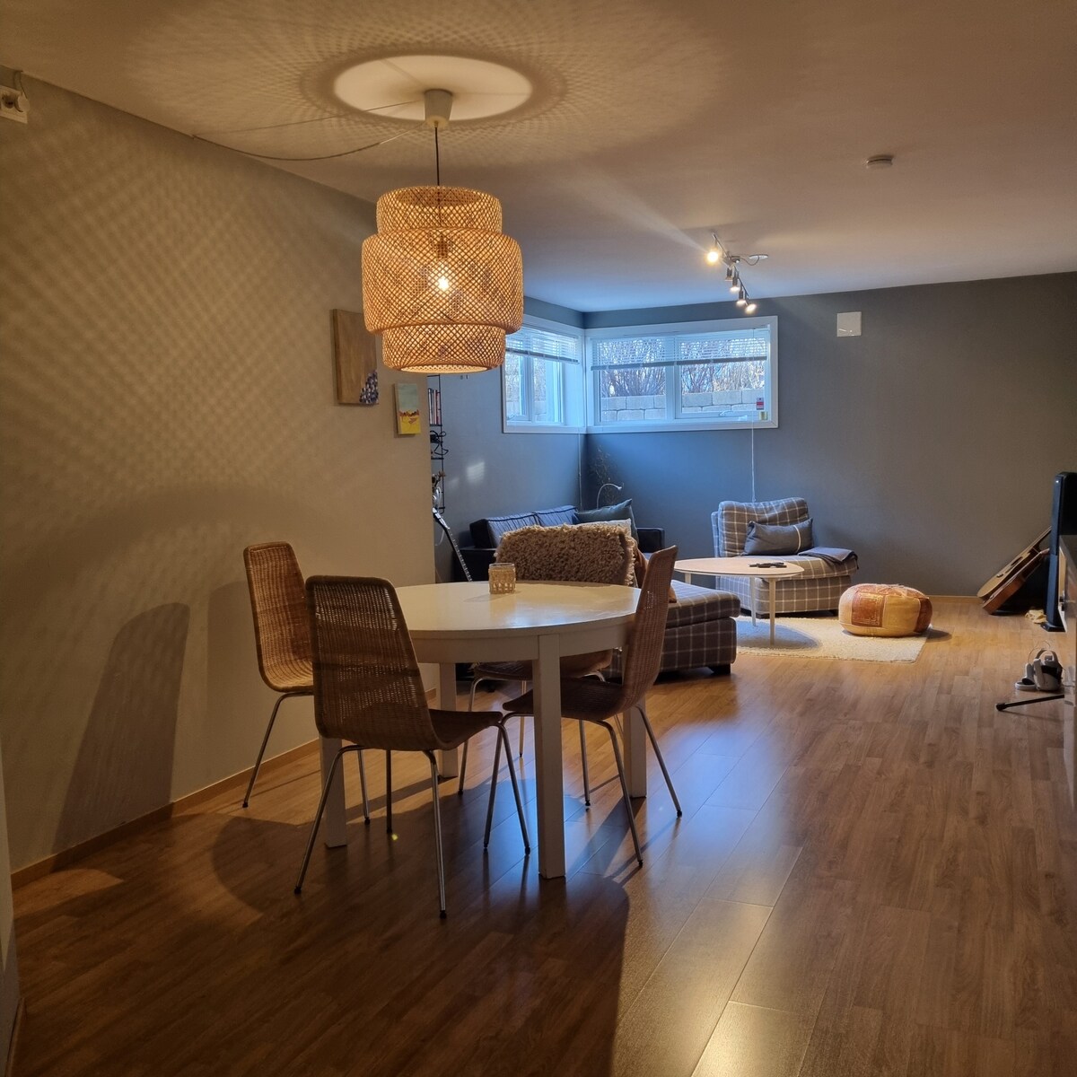 15-20min å gå til Sandnes sentrum. Bussholdeplass, butikk, lekeplasser, skatebowl, sandvolleyball og svømmehall i umiddelbar nærhet. 1-6 gjester. Fine turområder i Melsheia eller topptur til Vedafjell innen 30min. Fin hage med grillplass og terrasse ved hagedam. Bowlinghall, treningssenter, handlegate og shoppingmuligheter innen 2km. Elbilladere (2,4kW og 7,2kW) kan benyttes etter nærmere avtale. Ekstrakostnader medfølger. Det tillates kun opphold av betalende gjester i leiligheten.