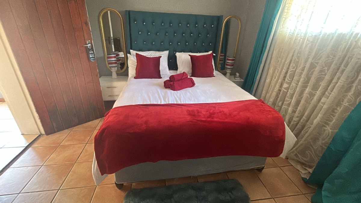 Woolworths、Checkers、Pnp、Mr D、Uber Eats、所有餐廳都提供外送服務。 靠近所有診所/醫院。 Lenmed Wilmed公園、Anncron、Sunningdale都在附近。 靠近Matlosana商場、Flamwood Walk。 這間公寓距離您所需的一切都在2公裏內。 房間配有雙人牀、書桌、衣櫃和帶淋浴的套房浴室。 有一臺大型智慧電視,提供免費Netflix和免費WiFi。 停車場在現場。 房源所在地區非常安全。