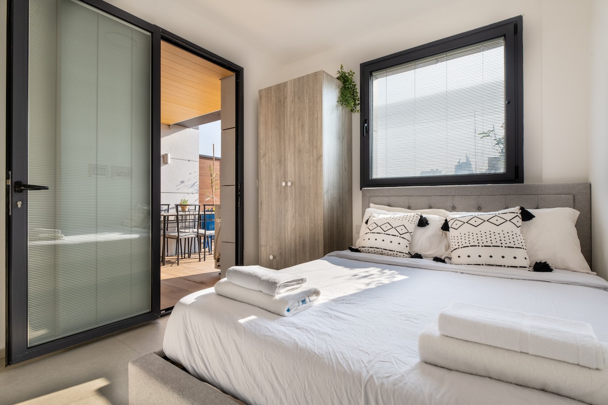 Bez House俯瞰大海,步行約30秒鐘即可抵達Neot海灘和長廊。 完美度假的完美海灘公寓! 設備舒適,包括熱水浴缸、智慧電視、豪華雙人牀和難忘的體驗。 步行30秒即可抵達海灘,無需穿過街道。 這是距離全國海灘最近的公寓大樓 全新裝修和裝潢, Beach House配備可俯瞰大海的按摩浴缸、舒適的牀墊、智慧電視、寬敞的淋浴間和超高速WiFi。
