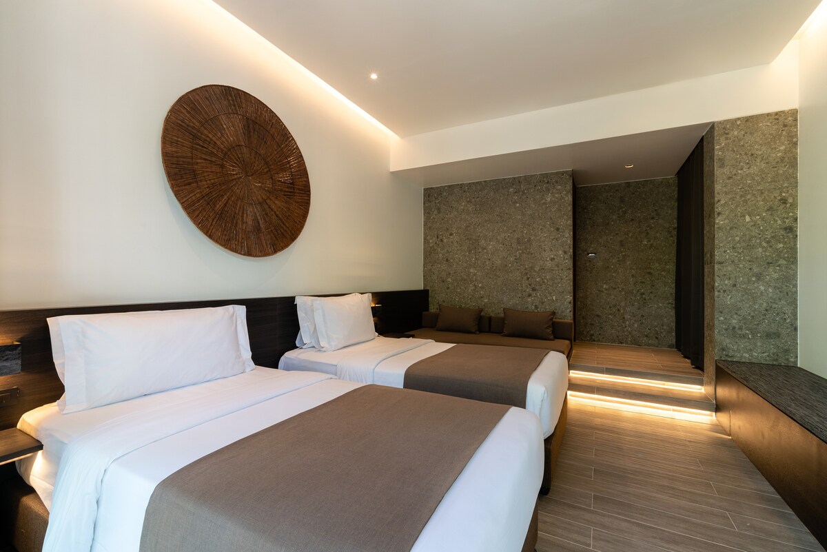 這間單間公寓坐落在島上最壯觀、最長的沙灘之一旁邊。 從露臺可以看到標誌性、放鬆的香巴拉海灘酒吧無邊際海灘前泳池和壯觀的島嶼海灣。 工作室非常寬敞,面積69平方公尺,面向大海的大陽臺,有海風和日落。 可供2名成人入住。包早餐。