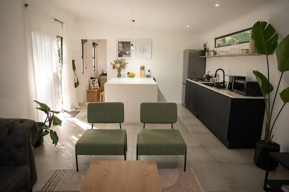 美麗、陽光明媚的空間。 配備齊全,讓您在旅途中享受如家一般的舒適體驗。 空調、高速 WiFi、電視、設備齊全的廚房和專屬工作空間(如有需要)。 位於Westville的中央郊區,靠近商店和熱門景點,但位於一個充滿生活的寧靜花園中,供您享受。可供1或2輛車安全停放。私人庭院,配有室外座位區,可提供放鬆的環境,滿足您的度假或商務需求。