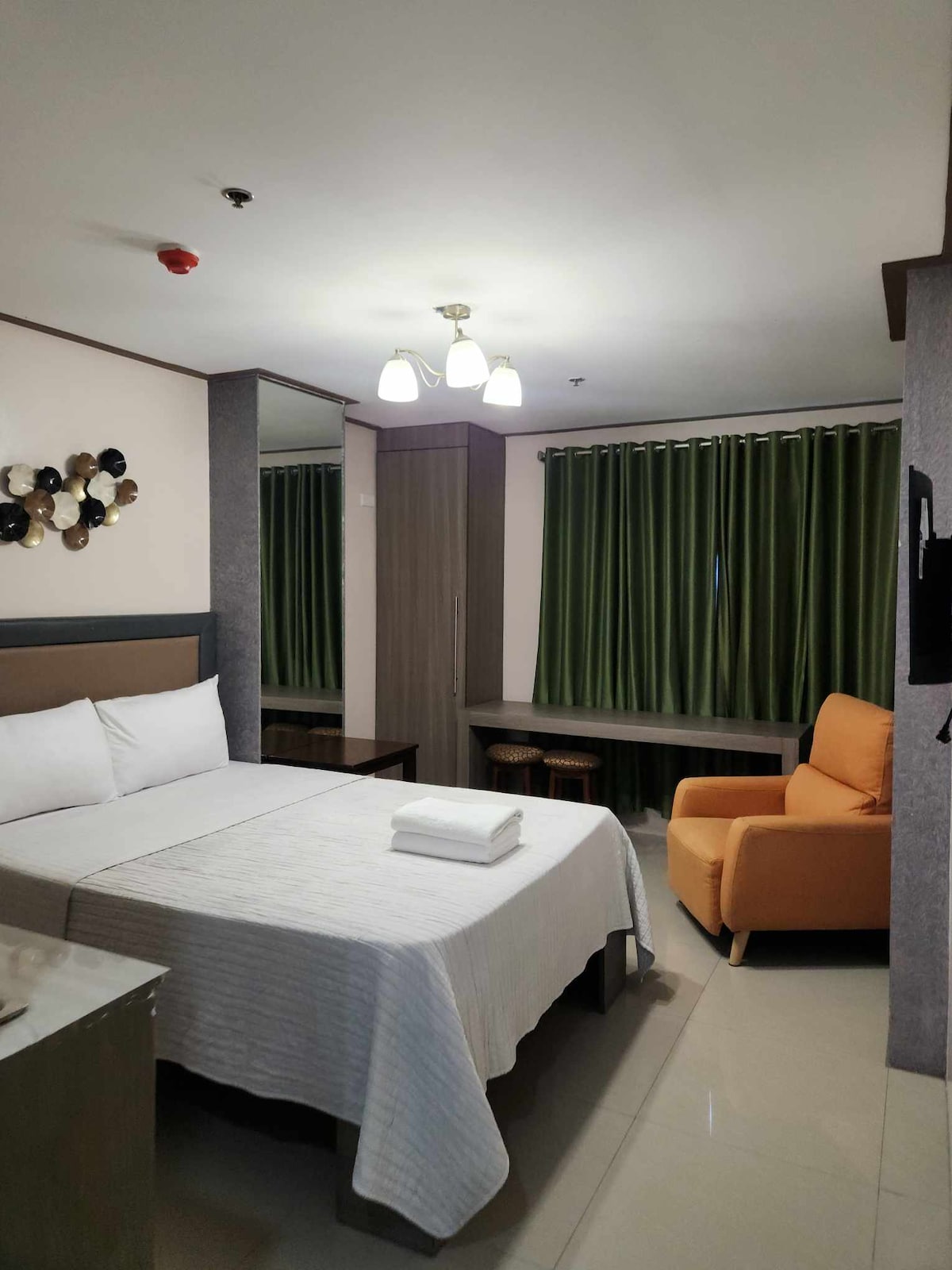 Luxurious Artsy 1 Bedroom unit. Walking distance to malls, 24hrs convenience stores, restaurants, groceries, and Lively Nightlife. ♛ 4k UHD TV + A/C + Workspace ♛ Netflix, Disney+, and Youtube access ♛ 400mbps upload and download speed! ♛ Board games are provided if you wanna have fun! ♛ fresh towels, and essentials provided ♛ Kitchenwares, cooking appliances, Microwave ♛ Coffee Machines ♛ Steam Iron, Hairdryer and Water Heater
