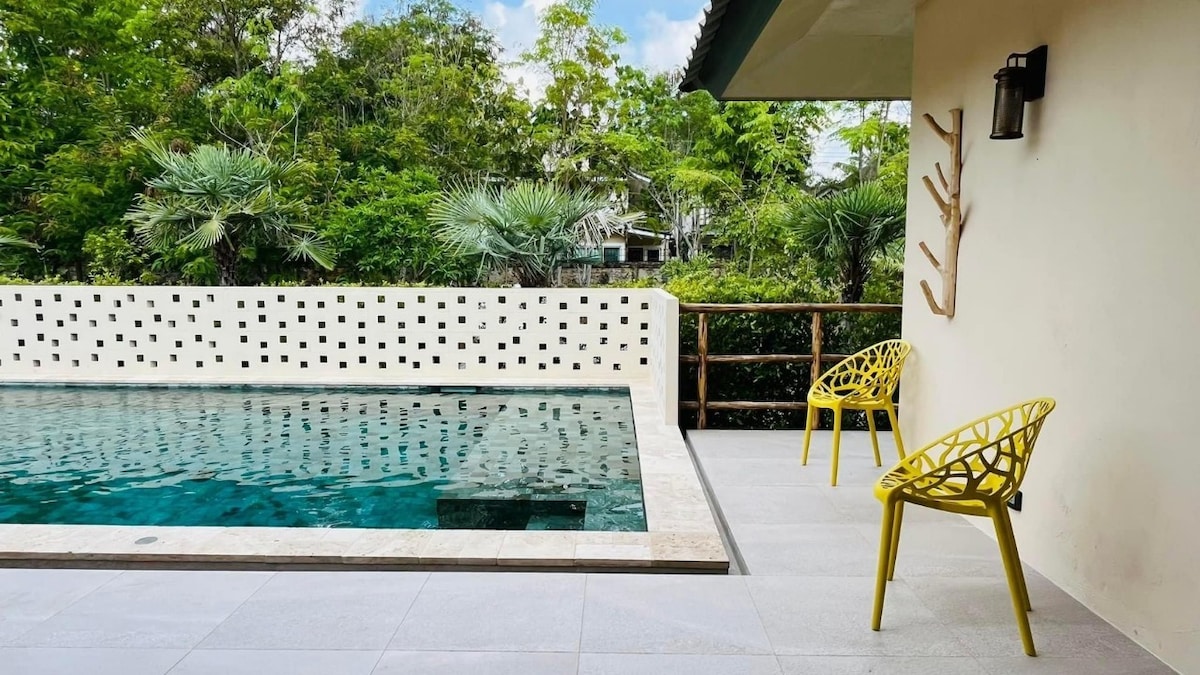CR 別墅,位於羅勇府(Rayong Province)Mae Phim 海灘邊緣,設有 3 間睡房和 3 間浴室,可容納 7 至 9 人。從旅居大堂步行即可抵達海邊。旅居鄰近便利店或生鮮市場等便利設施,海灘旁有海鮮可供選購,而且距離多個主要旅遊景點也不遠。你可以在旅居內訂購食物。可以參加水上活動前往島上。房源位於塔魯島(Koh Talu)外圍,可在海灘前潛水、釣魚和捕魷魚。適合家庭入住,可以在海邊放鬆身心、在水中玩耍、享受烹飪,環境寧靜而獨特。