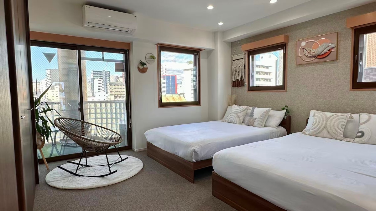 近道頓堀,大國町站180米,關西機場直達,難波區域稀有120㎡套房,獨佔大露台 3臥室1客廳1厨房