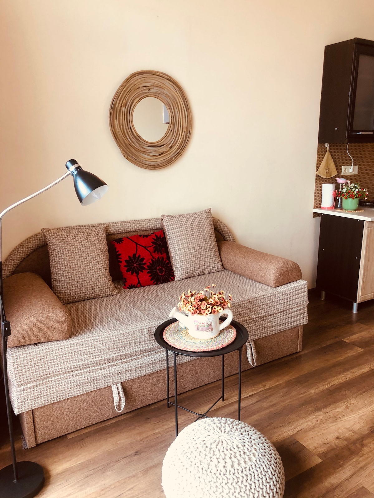 Cozy 50 m apartment with two bedrooms, on the seashore for 2-5 people, equipped with all necessary appliances, with a cozy balcony. There is a workplace and a cozy corner for romantic evenings.Lying on the bed, you can enjoy a beautiful view of the sea . In 5 minutes walk there is a supermarket two chain, two chain pharmacies, and three banks. A 10-minute walk from the central market, where you can buy the freshest vegetables, fruits and there are also shops where all this is more cheaper.