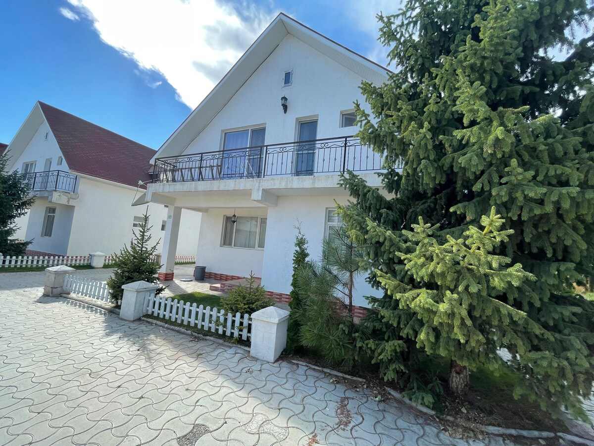 小屋位於Kara Oi村( Dolinka )的噴泉娛樂中心區域,距離Cholpon Ata 3公裏。 小屋一樓有一間獨立公寓,有獨立入口: 第一間臥室-一張大牀、儲物櫃、鏡子、牀頭櫃、椅子。 第二間臥室-大牀+折疊沙發、壁爐、鏡子、牀頭櫃、扶手椅、熨衣板。 單間公寓大廳(與廚房合併) -一張大折疊沙發+短沙發、配有衛星電視和DVD的電視。