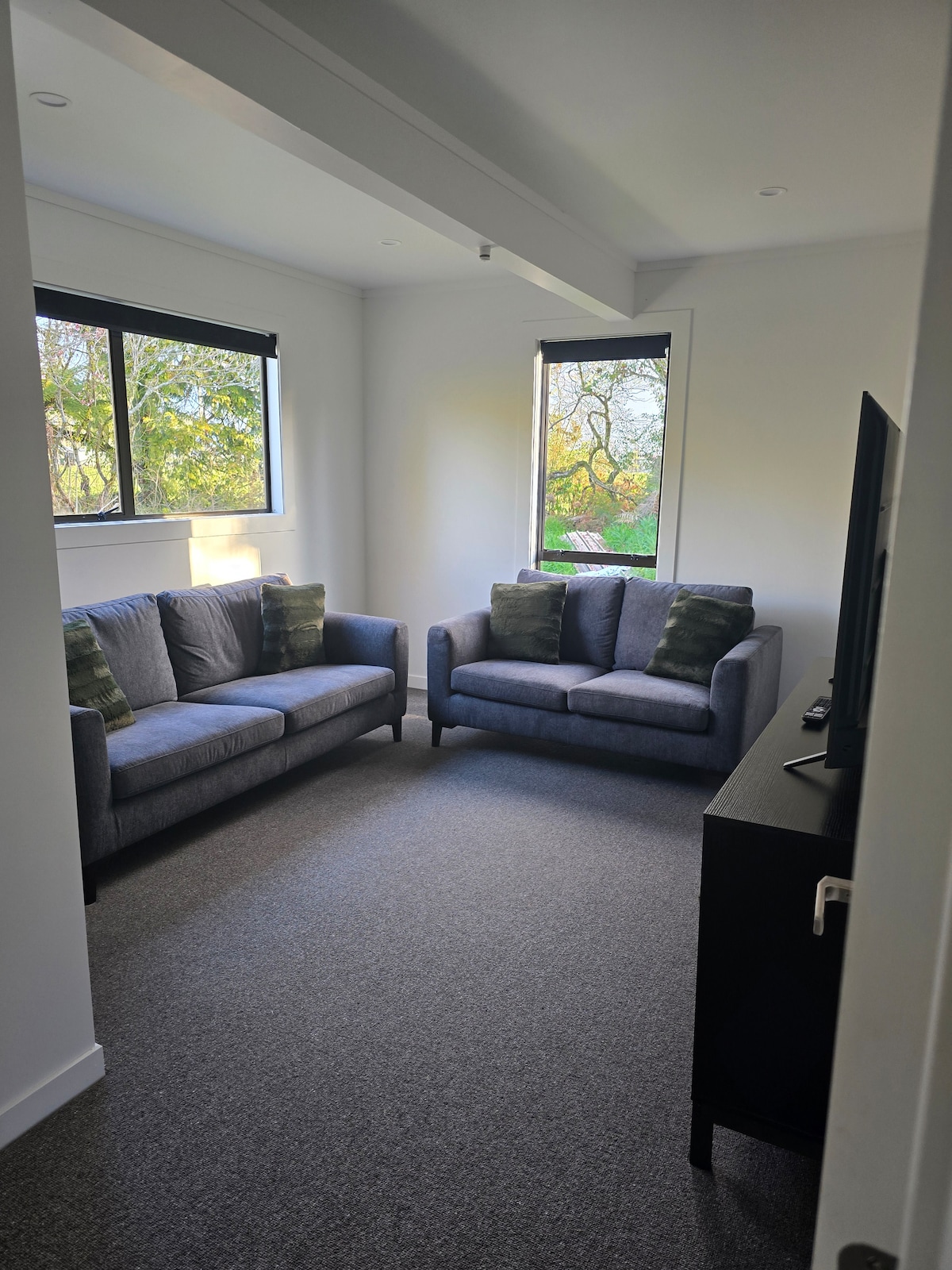 Relax in our 1 bedroom apartment with large open plan kitchen, dining & living area. Bedroom has a queen bed & also a single bed. Heat pump, gas powered hot water along with Sky TV, Sky Sports, Sky Movies and Wifi. Smart TV gives you access to online content as well as Netflix plus more. 50 inch Smart TV's in both the lounge and bedroom. 2 minute stroll to the Glowworm dell in one direction and the beach in the other direction. Easy, flat walk to town approx. 1.5km away. Private parking.