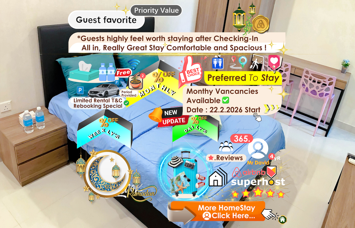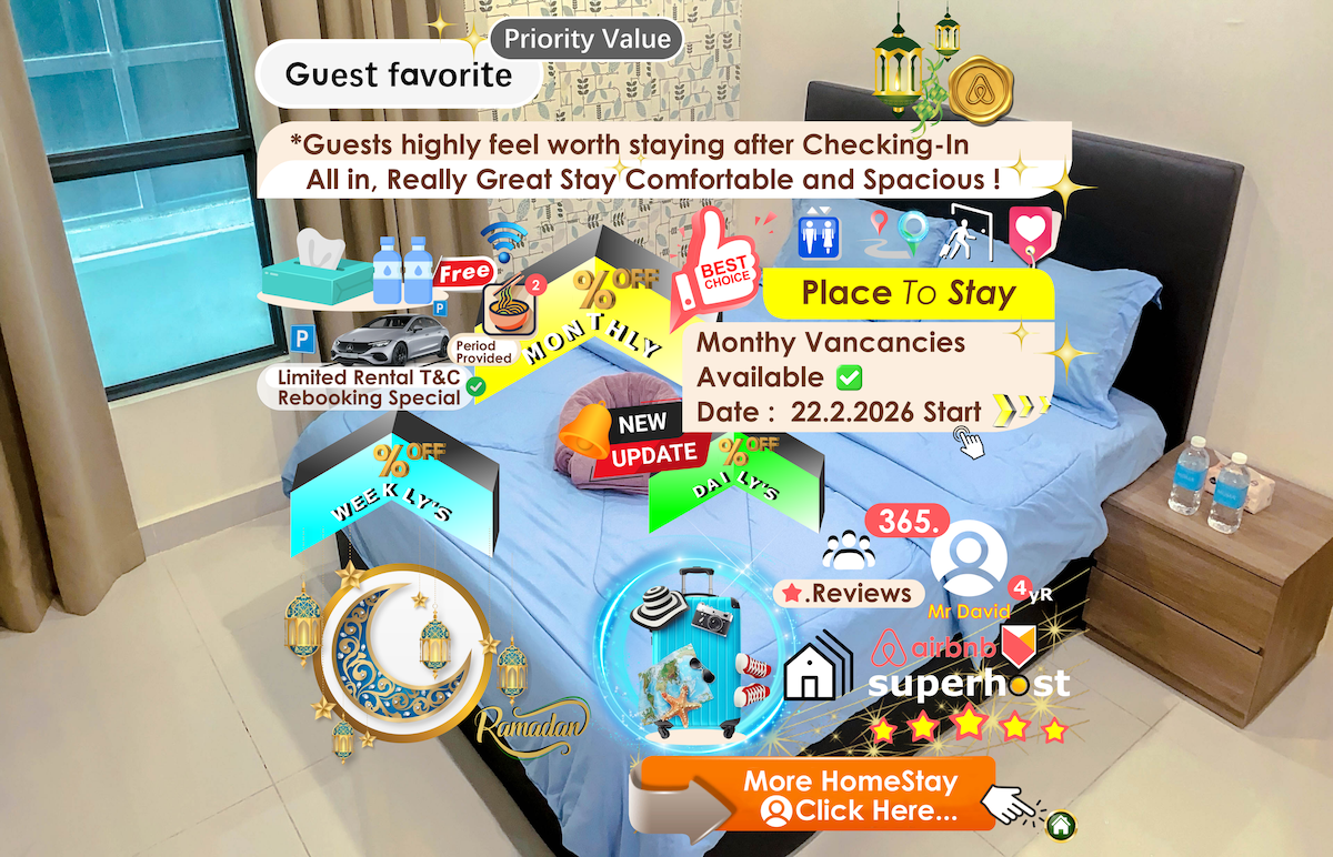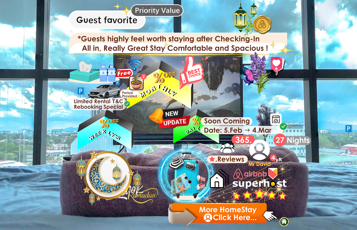 Forget worries in this spacious and serene space of muji style home stay at 12 level. ✅Unique & beautiful high sky, sunset, city view & peacefully quiet place. ✅Handpicked most comfortable bed no other homestay could provide. ✅Relaxation fun stay. ✅10 minutes drive to town. ✅15 minutes drive vivacit ❗Please inquiry for Parking lot if you need one as we have limited quota per month. For security purposes. A photo of your identity card is required.
