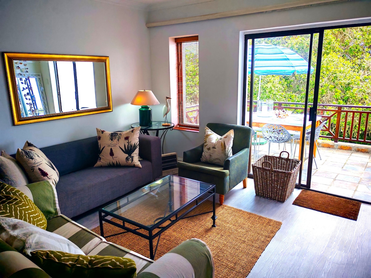 位於原始的Keurbooms自然保護區內,距離Plett和The Crags的旅遊城鎮不遠。 這間陽光明媚的一樓單位有一個獨立的花園入口,有自己的客廳、小廚房和烤肉露臺。 距離Keurbooms河泻湖70米,沿著泻湖邊緣步行5分鐘即可抵達海洋/海灘,以美麗的Pansy貝殼和原始的Keurbooms河海鳥保護區而聞名。 (這個海灘不適合遊泳)