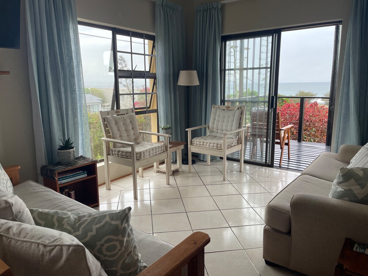 這間時尚的公寓位於寧靜的海景小村莊,可欣賞180度的海景,距離阿多大象公園(Addo Elephant Park)40分鐘,距離機場20分鐘。配有2間臥室、2間浴室、休息室、廚房、光纖WiFi、DSTV、烤肉和共用泳池。 休息室和1間臥室有海景,休息室前面有露臺,可欣賞日落,可欣賞馬路對面的海景。我們有自己的安全水源。鄰居Alan Tours提供每日前往Addo的旅遊,其他鄰居Raggy Charters提供賞鯨之旅
