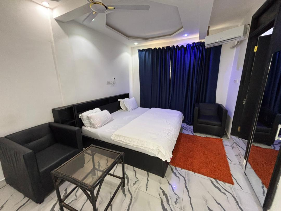 Cozy Studio and 1-bed apartments. 24hr CCTV security, Wi-Fi Internet, AC, rooftop terrace with breathtaking views of the University of Ghana Legon, Madina & surrounding areas. Smart TV, spacious living areas, private kitchen, Shared Laundrette, Car rentals, parking for 4 cars. airport pickup. Corner shop on site. • 25 mins drive to Kotoka Int. Airport, Shoprite, Atlantic Mall. • 10 mins drive to the Legon Botanical Garden • 40 mins drive to Aburi botanical gardens Book, Enjoy, Relax ☺️