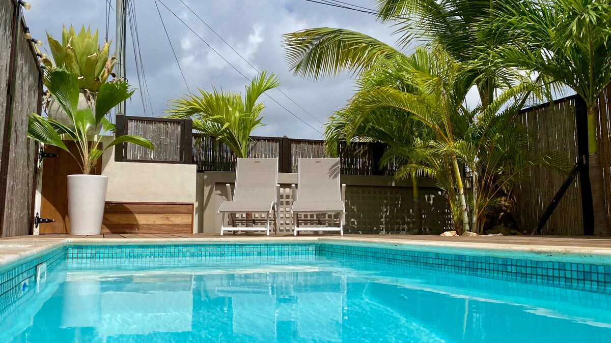 Discover our brand new Balinese stay in downtown Bonaire, just 250m from the boulevard & sea. Car rental available! This peaceful oasis features it's own driveway, a rinse station for dive/surf gear and a refreshing outdoor shower. Unwind on your private veranda with small plunge pool, a Weber BBQ, lounge & hammock. Despite the central location, enjoy tranquility in this stylish space surrouded by tropical birds and iguanas. The elegant interior blends tropical charm with modern comfort.