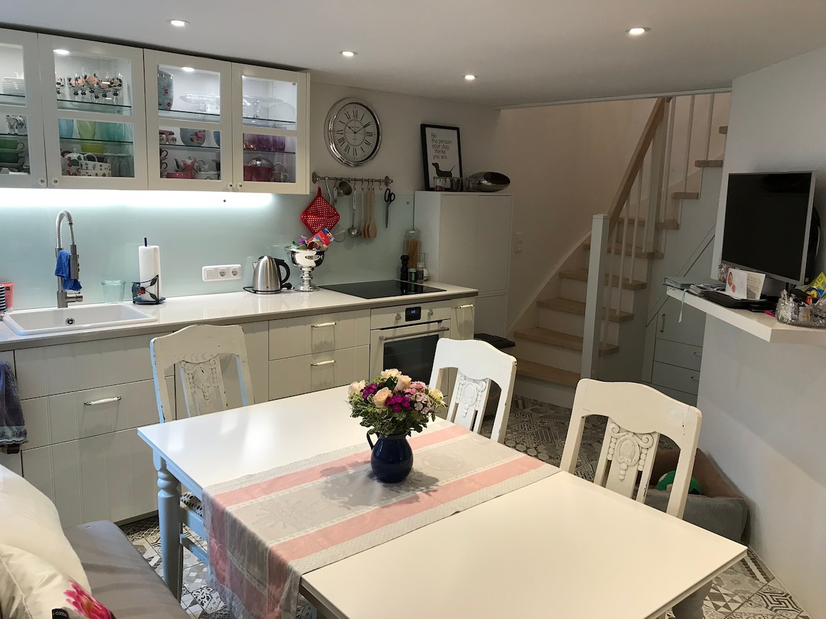 全新翻修和裝潢22Qm/1房公寓。 地下室公寓有私人通道。 天花板高度約195公分。 有一個小廚房,配有陶瓷爐、水槽和冰箱/冰櫃。 廚房設備齊全。 公寓內還有獨立的廁所、洗手盆和吹風機,以及淋浴間。電視、梳妝台、餐桌和2張椅子。 大型彈簧床也是家具的一部分。 祝您假期愉快
