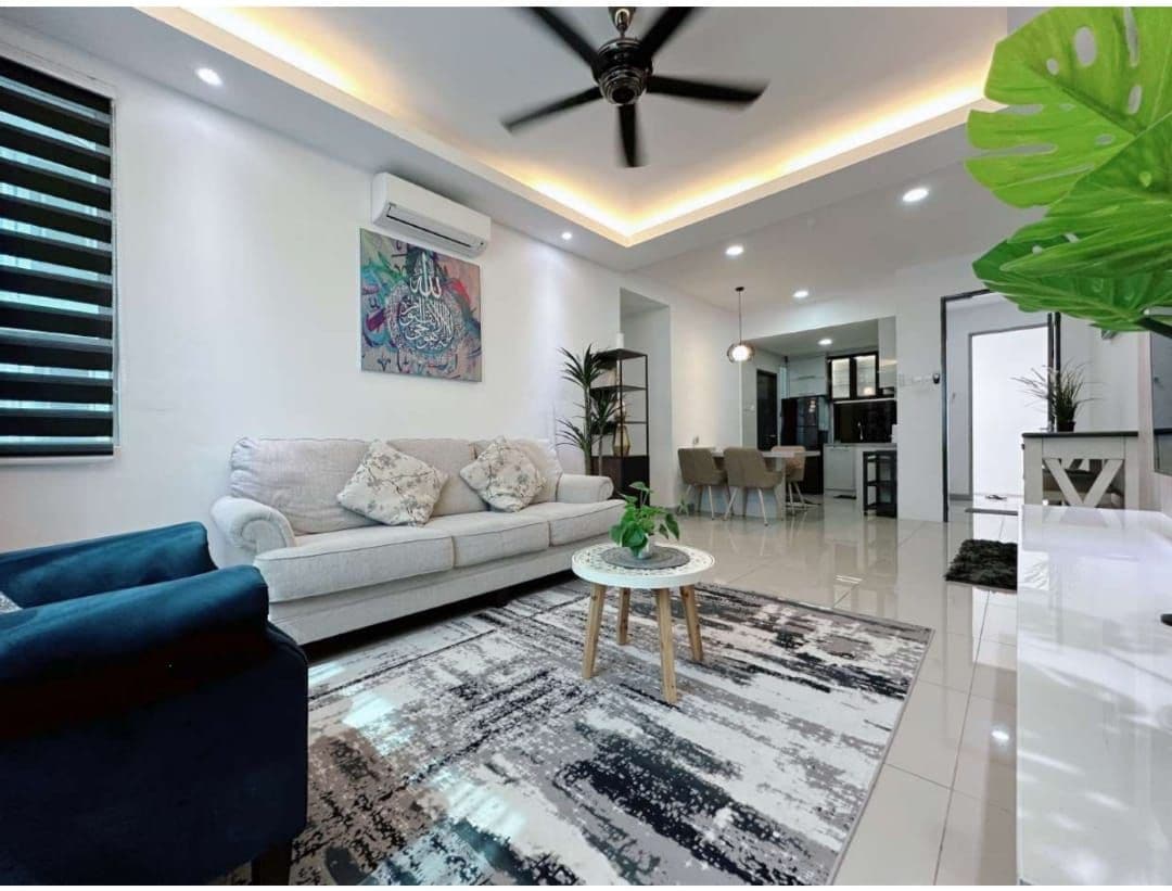 KELENGKAPAN HOMESTAY 🔻 ✳️Ruang tamu•Smart TV(netflix)•TM unifi•Set Sofa ✳️Meja makan 6kerusi ✳️4bilik tidur [Katil Queen•aircond & kipas] ✳️Bantal extra/toto ✳️Dapur➡️Dilengkapi dengan alat memasak yang lengkap•Induction Cooker•Periuk Nasi•Cerek Elektrik•Blender•Peti Ais•Mesin Basuh• ✳️Water dispenser midea ✳️Bbq pit ✳️2 Bilik air, toilet duduk [1 water heater shower] ✳️Iron Board + Seterika ✳️Tuala 2helai setiap bilik ‼️PARKING BERPAGAR MUAT 3-4 BUAH KERETA‼️ 🚭DILARANG MEROKOK🚭