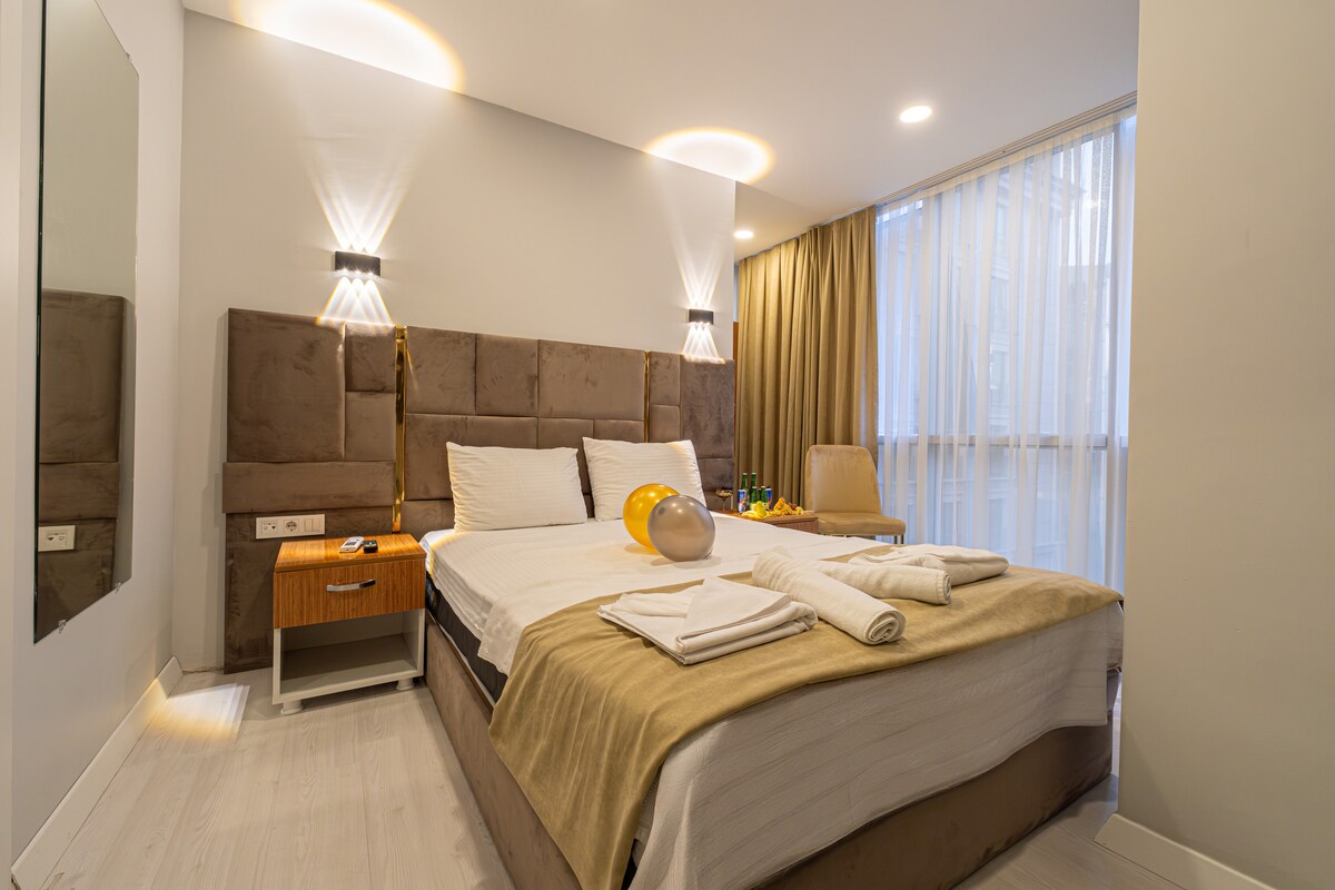Cevas套房飯店-雙人飯店房間 可加牀。 1 +0豪華飯店房間, CEVAS Suite HOTEL位於Ringal-Atakent-Ikitelli中心,擁有獨特的外觀和品質裝飾特別的建築作品,您有機會獲得優質時尚、可靠和衛生的住宿。 我們為您的所有住宿計劃提供舒適的住宿計劃。 我們的公寓和房間旨在滿足您所有住宿需求。