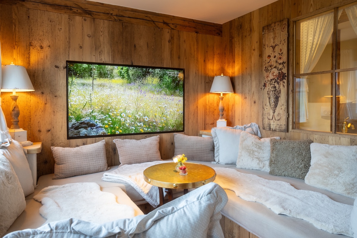 Titania is a special retreat inspired by Shakespeare’s A Midsummer Night’s Dream. Set within the garden of the Sonnenhügel, it forms a small world of its own – calm, romantic and thoughtfully designed. Its fully sheltered garden makes Titania truly unique. Surrounded by high hedges, this space is entirely private – just greenery, quiet and the feeling of stepping out of everyday life for a while. A peaceful place for those who value privacy, nature and subtle beauty.