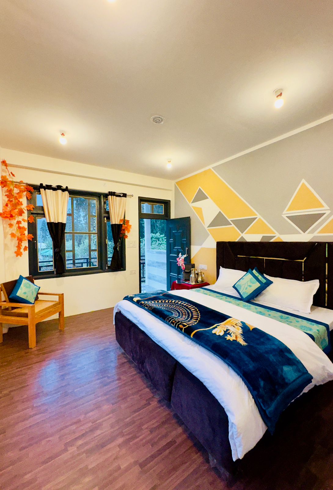 這間家庭住宿位於馬納利最迷人的景色。 步行即可抵達Hadimba寺廟和大自然漫步。 距離商場路3公裏。 步行2公裏即可抵達老馬納利橋。 我們的房源是2間小屋,我們有2-3個房間的樓層,每個房間都有私人陽臺和美麗的戶外座位。 這間位於一樓 我們有室內廚師,您可以訂購任何東西,也可以從我們的室內菜單中選擇。