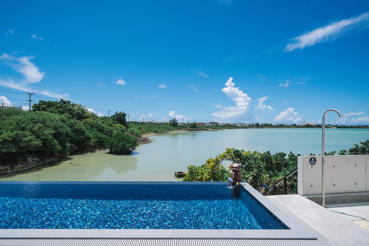 【2025年4月】 增设温水无边际泳池与微泡温泉露天浴池 以“在宫古岛享受奢华别墅生活”为理念,打造出能让海外宾客如置身私人别墅般尽享私密空间的完全独立式别墅,于2024年5月正式启用。 每日仅接待一组宾客,最多可容纳6人入住。并非与邻居相连的住宿,而是完全独立的单栋两室、三LDK格局,堪称举世无双的独一无二别墅。 2025年4月将增建约50平方米的宽敞露台,配备仅供宾客专享的私人泳池及微气泡水疗露天浴池按摩池。 露台与无边际泳池相连,绵延至天际的乳白色海洋构成震撼绝景。伊良部大桥方向的宫古蓝与与那霸湾的淡乳白交织出独特渐变色调。退潮时分,濒危野鸟前来觅食;夜幕降临,满天星斗璀璨——在此尽享私密时光,无需顾虑他人目光。