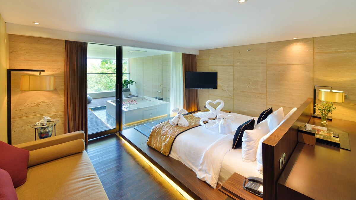 優雅的蜜月房間,配有戶外按摩浴池