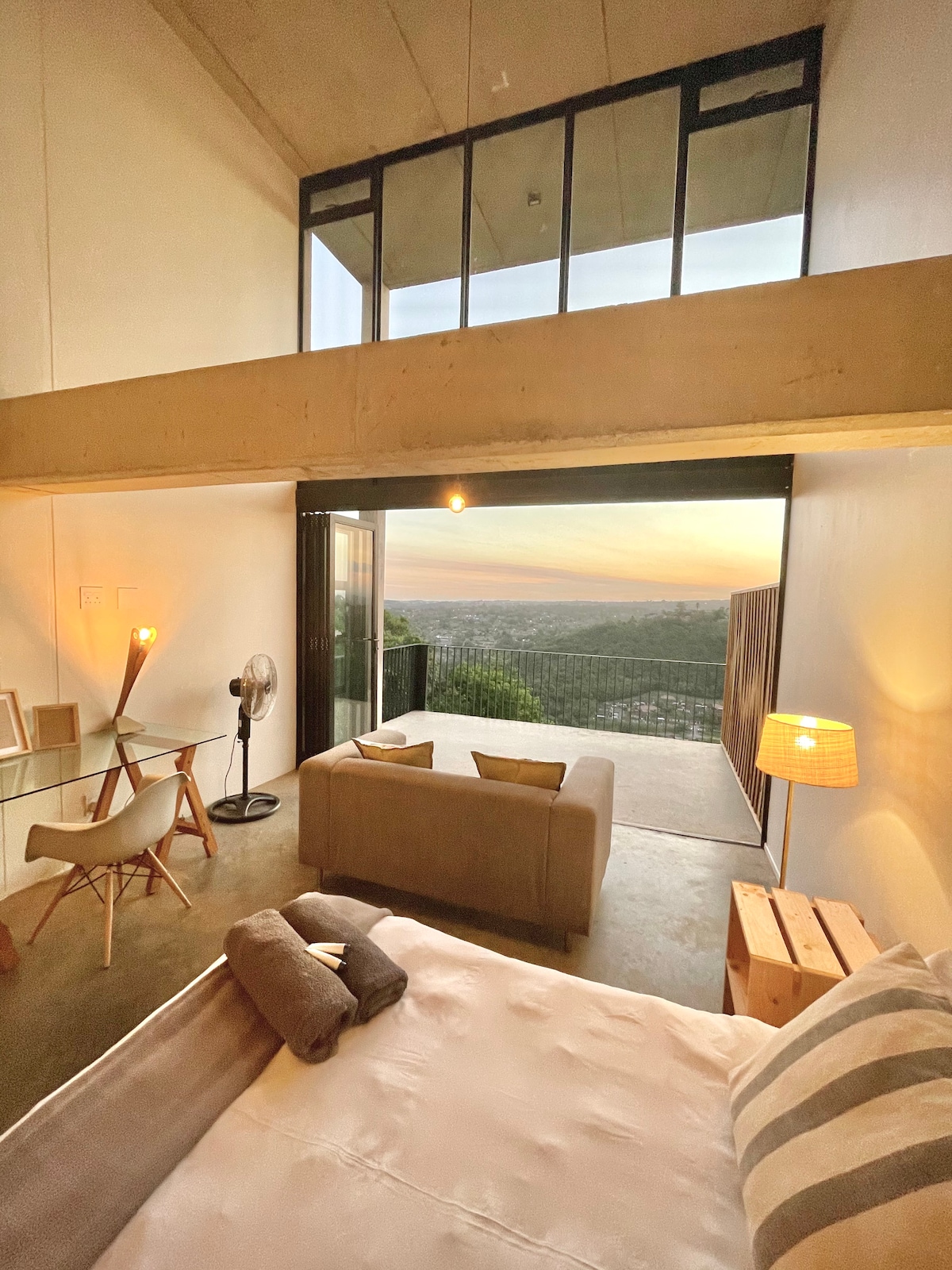 This modern, creative space is one of two hidden gems in the leafy suburb of Westville (also see Yellow Room at The Hidden Lookout) Up high in the trees, our space is a tranquil, beautiful, simple space, perfect for a break from the city, but close enough to everything to still have fun! If you are coming for business we have a fast and dependable WiFi & work station & GENERATOR if necessary.