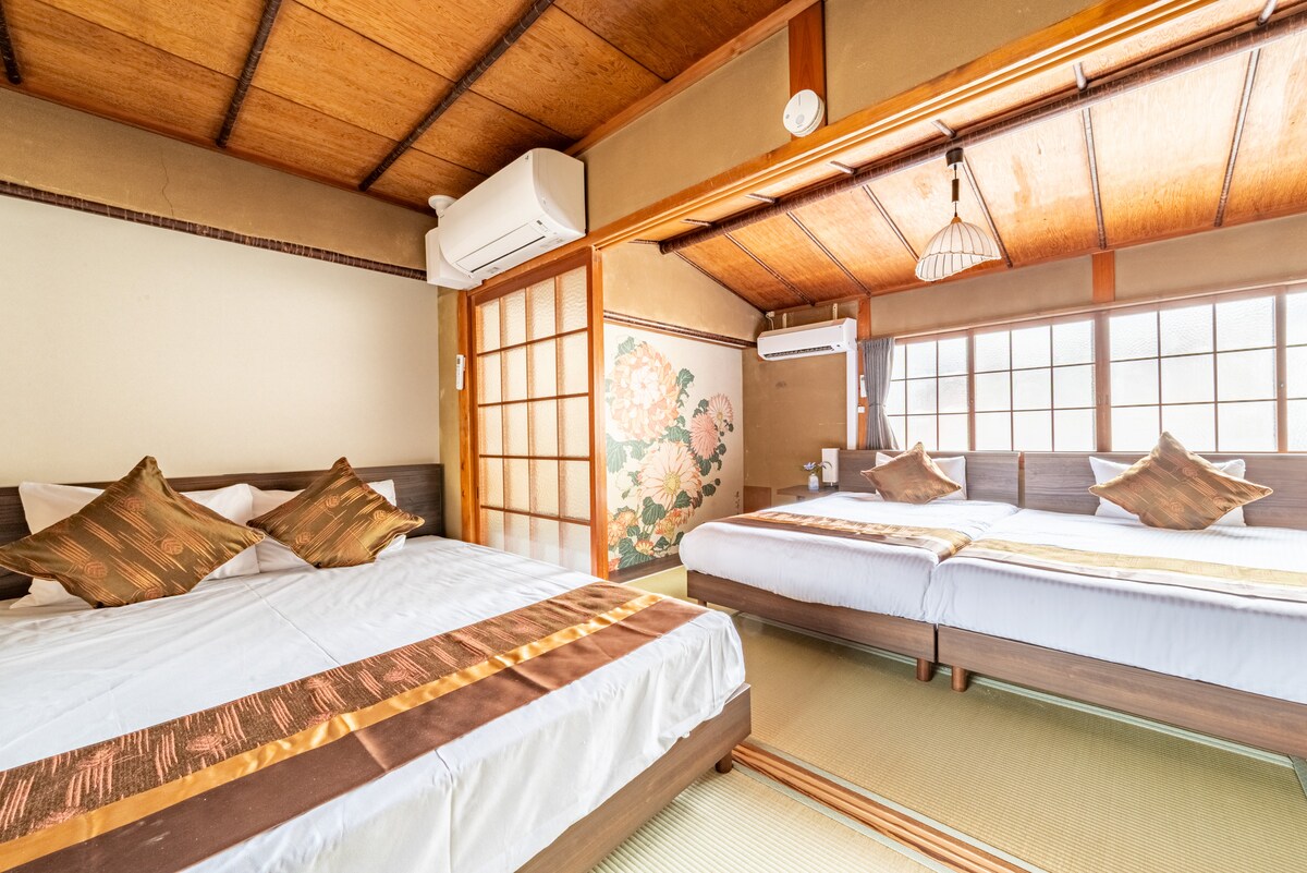 【築100年京町家 × モダン快適ステイ】|清水寺・祇園・河原町も徒歩圏内|最大8名宿泊可 歴史ある京都・清水五条エリアに佇む、築100年以上の京町家を2025年にリノベーション。 家族旅行やグループ滞在にぴったりな3LDKの貸切町家で、伝統建築と快適性が融合した“暮らすような京都ステイ”を叶えます。 まるで時をさかのぼったような、古き良き日本の静けさをご体感。 🛌 部屋 ・グループ宿泊:ベッドルーム3室(セミダブル×2、クイーンベッド×1、和式布団×2)+リビングソファベッド2台 ※寝具は要相談 ・和モダンの洗練空間:真鍮色のモダン家具と、障子や畳を活かした和風装飾が融合 ・長期滞在歓迎:洗濯乾燥機・フルキッチン完備で自炊・洗濯も安心 ・娯楽も充実:Nintendo Switch&プロジェクターで映画やゲームを満喫 ・無料自転車(4台):周辺の散策や観光に便利 🚶♀️ アクセス抜群 ・最寄りの七条駅/清水五条駅へ徒歩8分 ・祇園・河原町まで徒歩15分 ・阪急線で大阪へ1本 ・京都駅、清水寺、伏見稲荷、二条城、嵐山など、主要観光地への移動もスムーズ