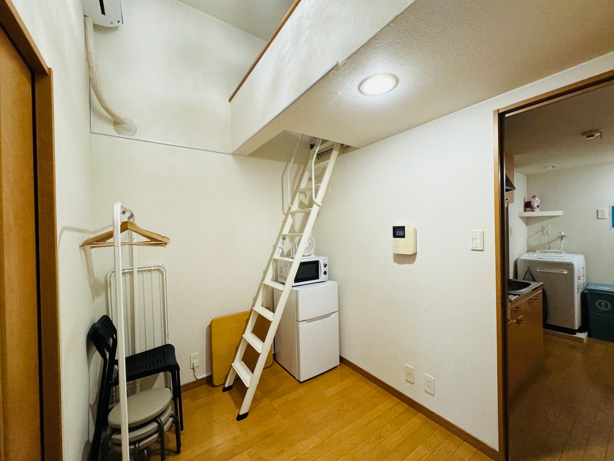 📍 位於福岡博多站附近 這是一間位於福岡市中心箕島區的寧靜閣樓式客房,鄰近博多站。 🌸 交通便利——從博多站步行約 15 至 18 分鐘,或乘坐巴士約 3 個車站即可抵達。 🌸 步行 2 分鐘內即可抵達一間大型 Mr. Max 超級市場和一間 24 小時營業的 Sunny 商店,附近亦有多間便利店,日常生活十分方便。 🌸 它適合各種情況,包括情侶旅行、小型團體旅行和家庭旅行。亦推薦給希望以經濟實惠的方式享受福岡的人士。 🌸 房間面積約 25 平方米(269 平方呎),採用開放式佈局,充分利用有限的空間。最多可容納 4 人,睡房內有 2 張單人日式床墊,閣樓內則有可供 2 人使用的日式床墊。我們為每位旅人提供一張單人日式床墊(100 × 210 厘米/厚度約 2.5 厘米)。 🌸 睡房採用傳統的日式榻榻米空間,因此即使帶同幼童入住,也能安心入睡。 🌸 大門裝有自動鎖,因此只有住戶才能進入大廈,讓你安心入住。